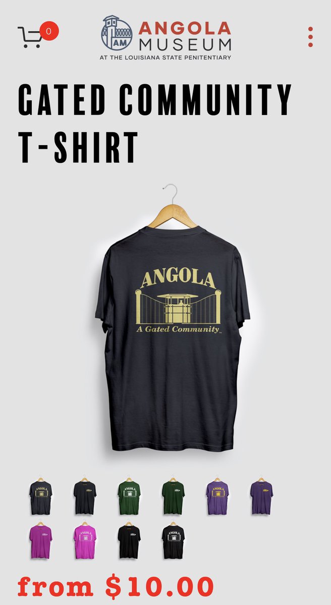 If you prefer beer instead of liquor, there are also options for you. The Angola bottle koozie even comes with a design that has the silhouette of a watchtower surrounded by the words “ANGOLA: A Gated Community”