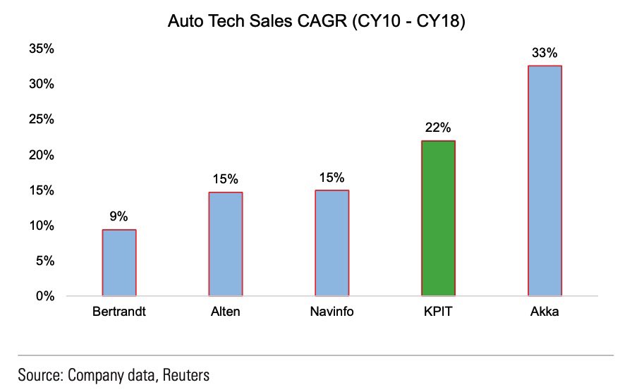 1) KPIT is one of the very few software integrators in the auto tech field which earns 100% of its revenue from auto tech end markets. This could boost its capability to win incremental share of contracts in this space