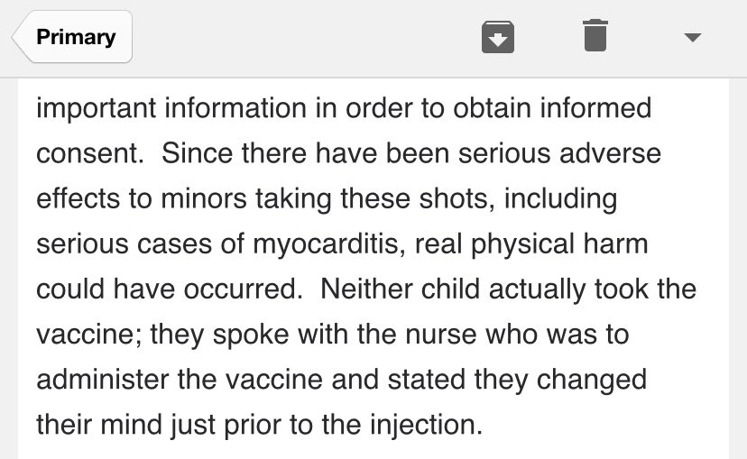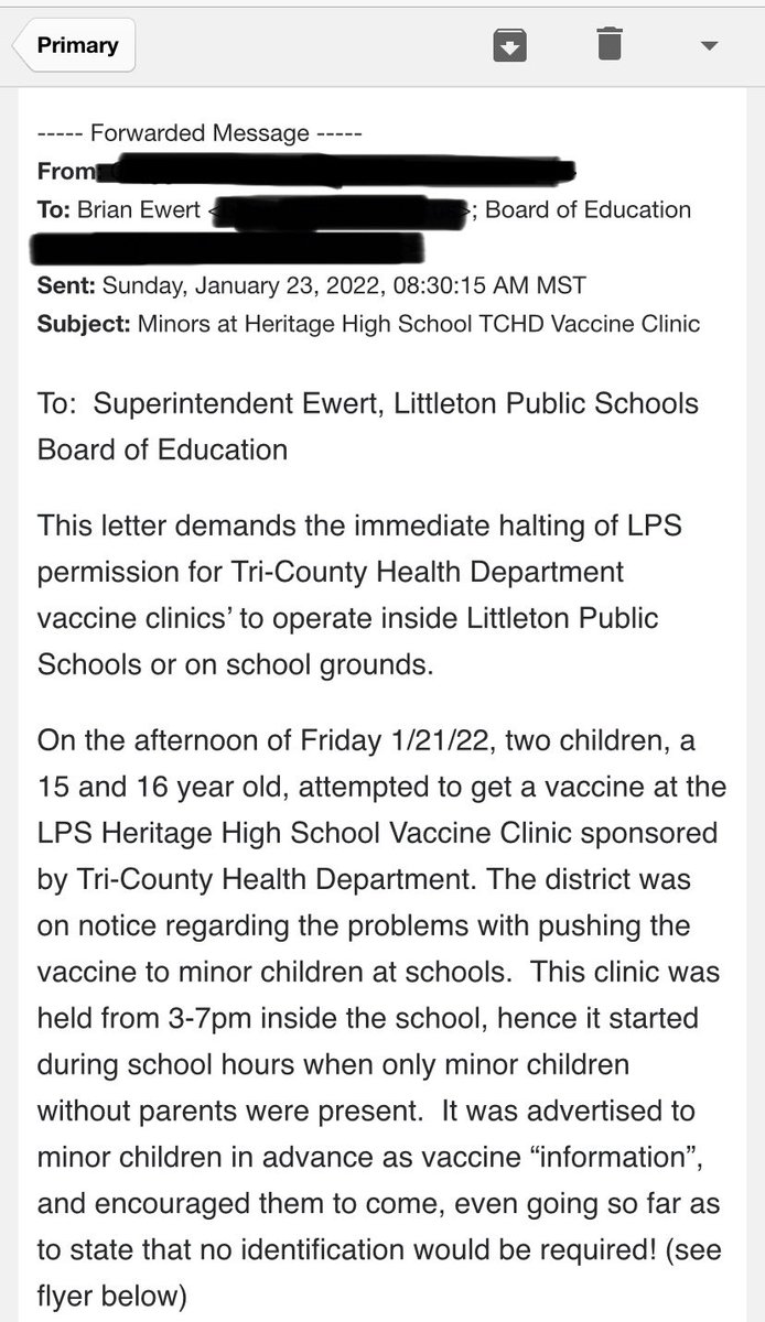 This is this boy’s dad email to the school. The superintendent clarifies that a parent must be present for minors (however you will see in the next video that a minor was able to obtain the vaccine without a guardian present.)