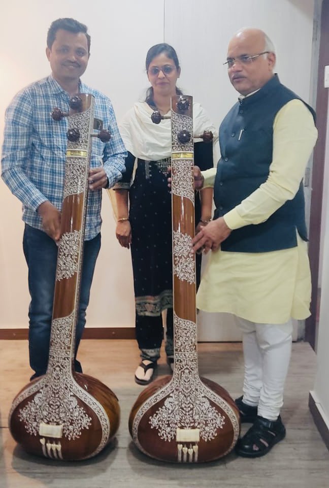 In Pune had an enlightening interaction with scholar Parveen Mulla and her bro Altaf Mulla,both from Miraj,Sangli!Mullas are one of the few families into Tanpura,Sitar & RudraVeena manufacturing! Felicitated Perveen, researching into issues of musical instrument manufacturers!1/3