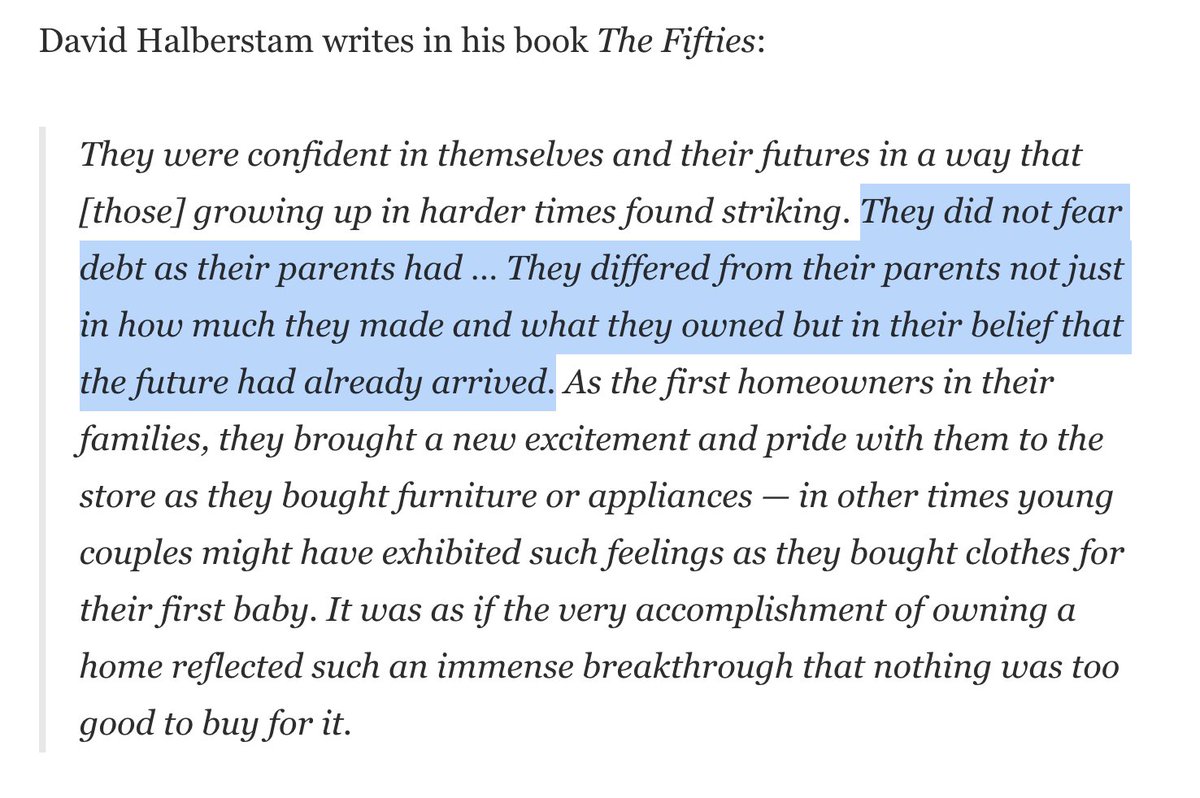 Back in the '50s the GI Bill spurred an explosion in consumer credit & new mortgages. Middle-class families stretched to live "like upper-class."