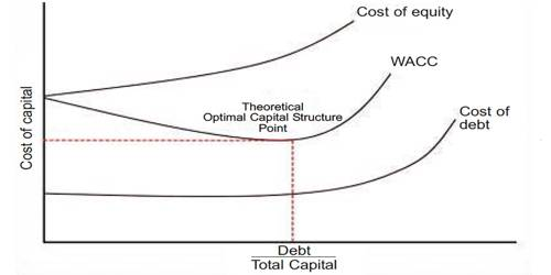 At first equity is more expensive. So u borrow. The more u borrow, the higher ur default risk & more expensive the next loan. At some point cost of debt catches up to equity, i.e. the optimal capital structure point.