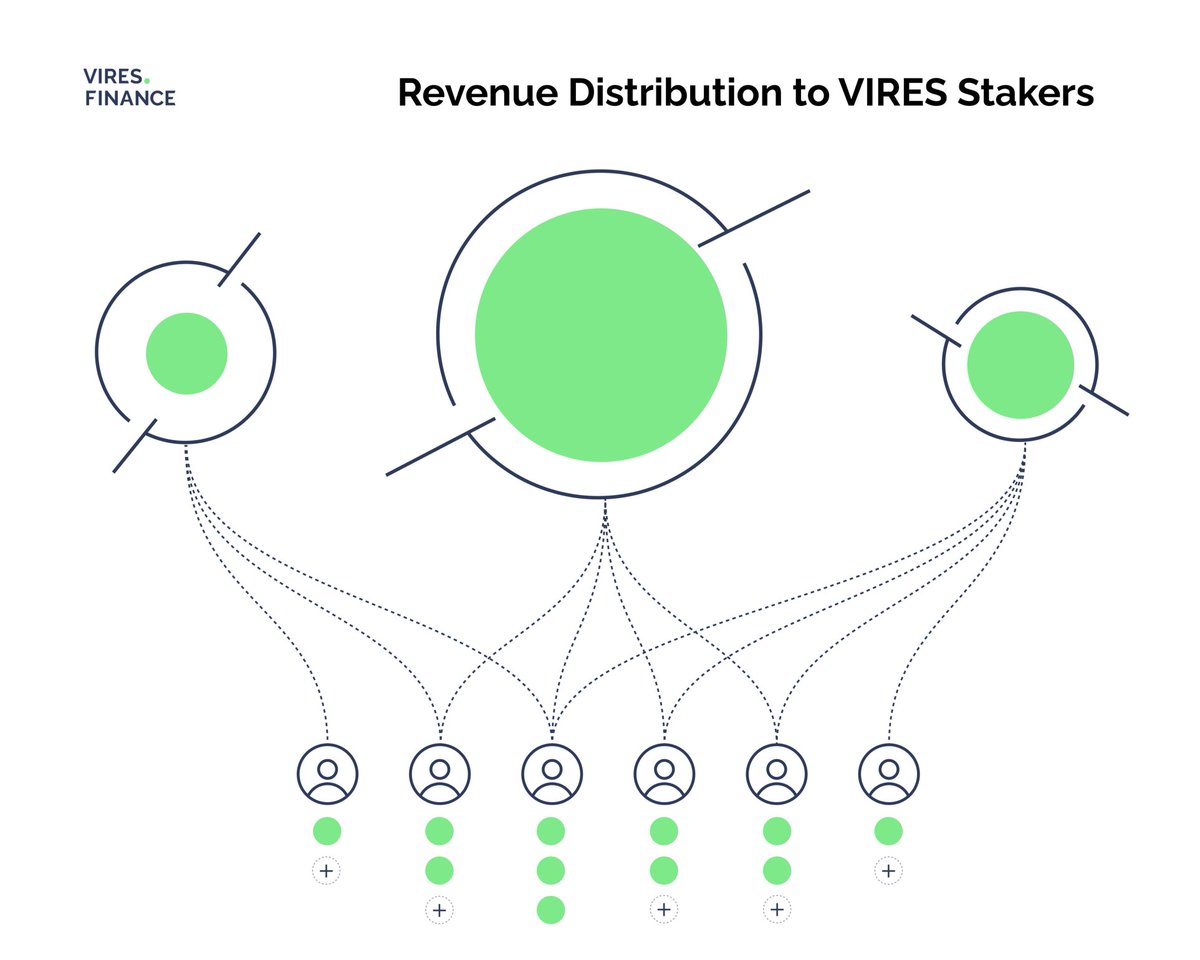 Cuando los usuarios aportan liquidez a Vires.Finance , parte de ella se presta a otros usuarios. Los prestatarios pagan la APR para préstamos , que se distribuye entre los proveedores de liquidez en forma de APY para préstamos.