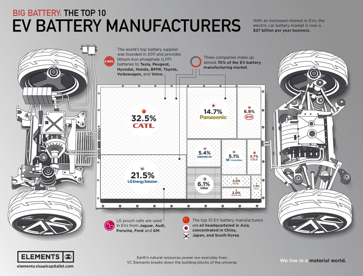 -Today #China controls over 40% of EV battery market #SouthKorea 32% & #Japan 18%