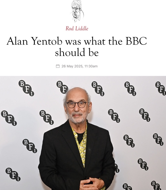 2./ When Yentob died in May he was lauded as the very embodiment of the BBC. You'd hardly have guessed his career had been dogged by decades of scandal involving expen$e$. I first met Alan in 2002 when I was asked to direct the first episode of 'Imagine' a new arts series.