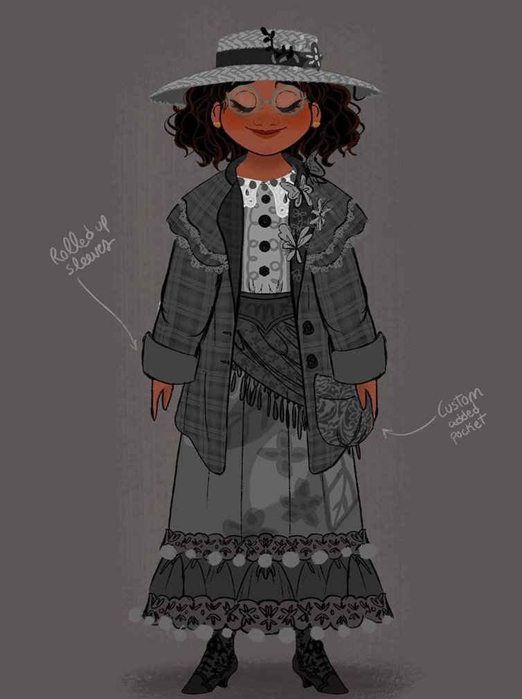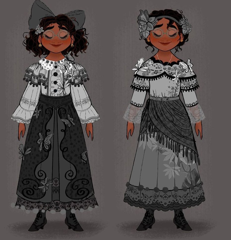 Mirabel busca complacer a su abuela más que a nadie. Y una forma de reflejar eso es hacer espejo de su estilo. Entonces en algún momento exploraron looks más victorianos pensando en la temporalidad de la abuela.