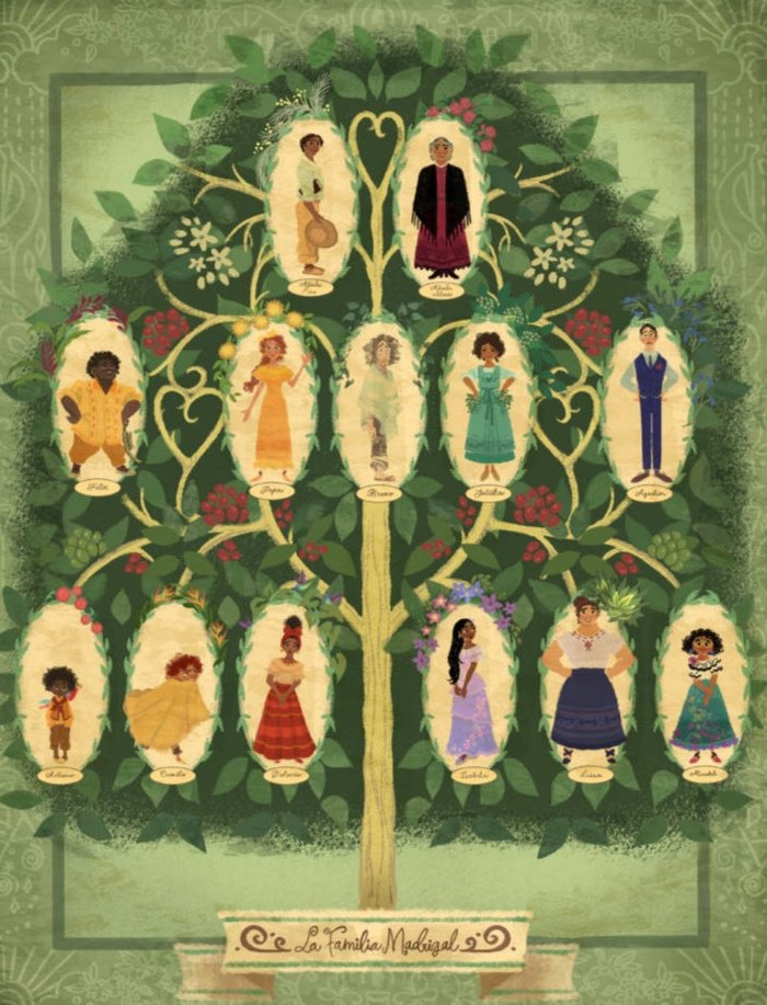 Maribel es una artesana colombiana! ♥️ y en su falda vemos el homenaje a su familia mágica. Miren que no son los mismos símbolos que lleva la ropa de cada personaje, no. Son sus propias interpretaciones del don de cada uno. El de Antonio es mi fav ✨