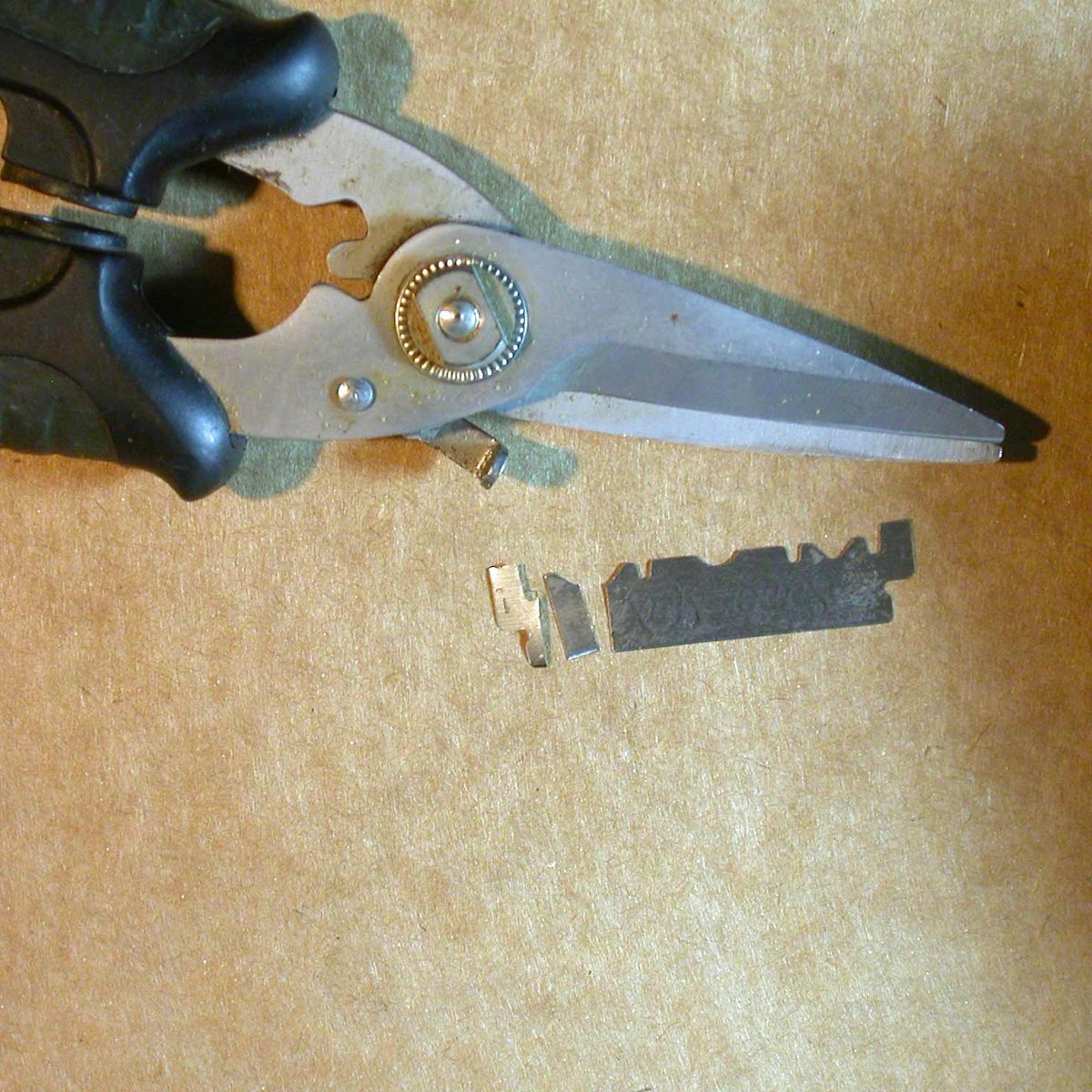 I was surprised when @maxiePut first mentioned cutting razor blades with scissors but I was soon a convert. Here I have snipped off the rounded end, then snipped off a short segment once the end is blunted.