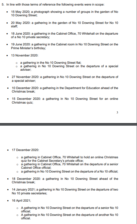 Gray: "At least some of the gatherings in question represent a serious failure to observe not just the high standards expected of those working at the heart of Government but also of the standards expected of the entire British population at the time."