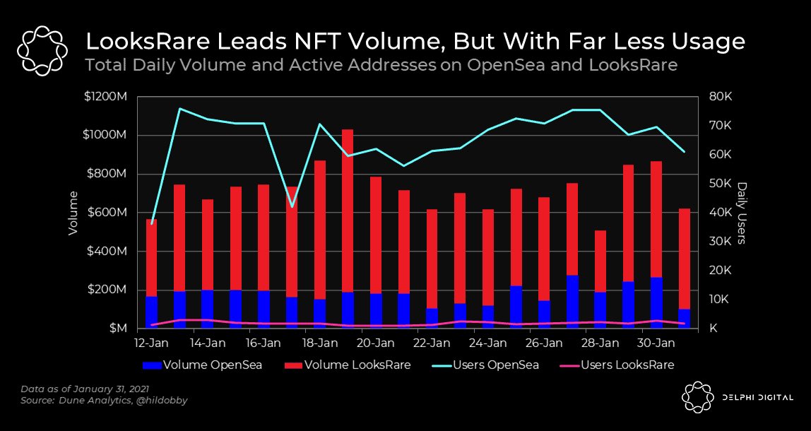 OpenSea has made $93M in marketplace fees, while projects have earned a cumulative $202M in royalty fees in January alone.