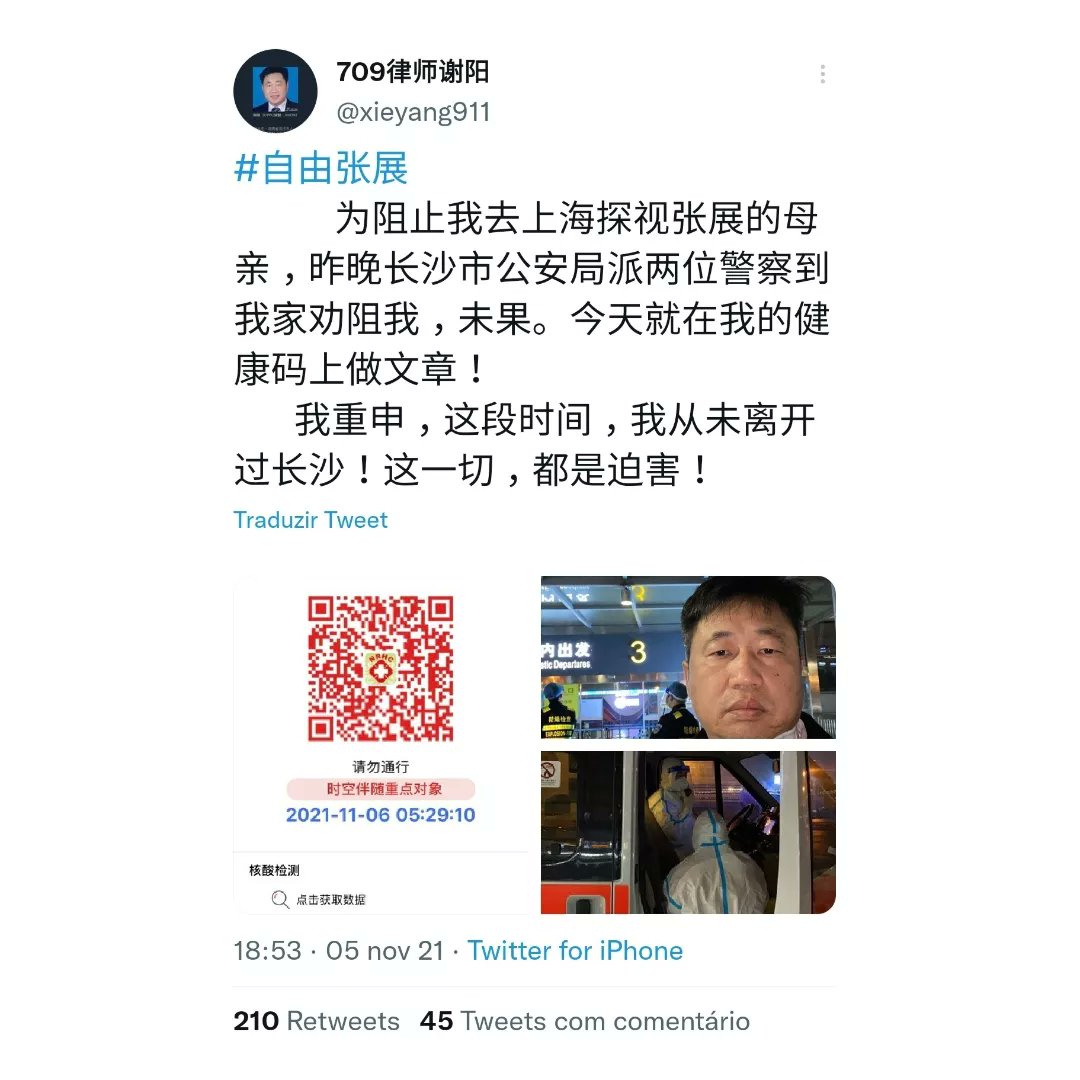 É o que aconteceu com Xie Yang, ativista de direitos humanos, que tuitou a respeito de sua experiência recentemente. Novos tempos.