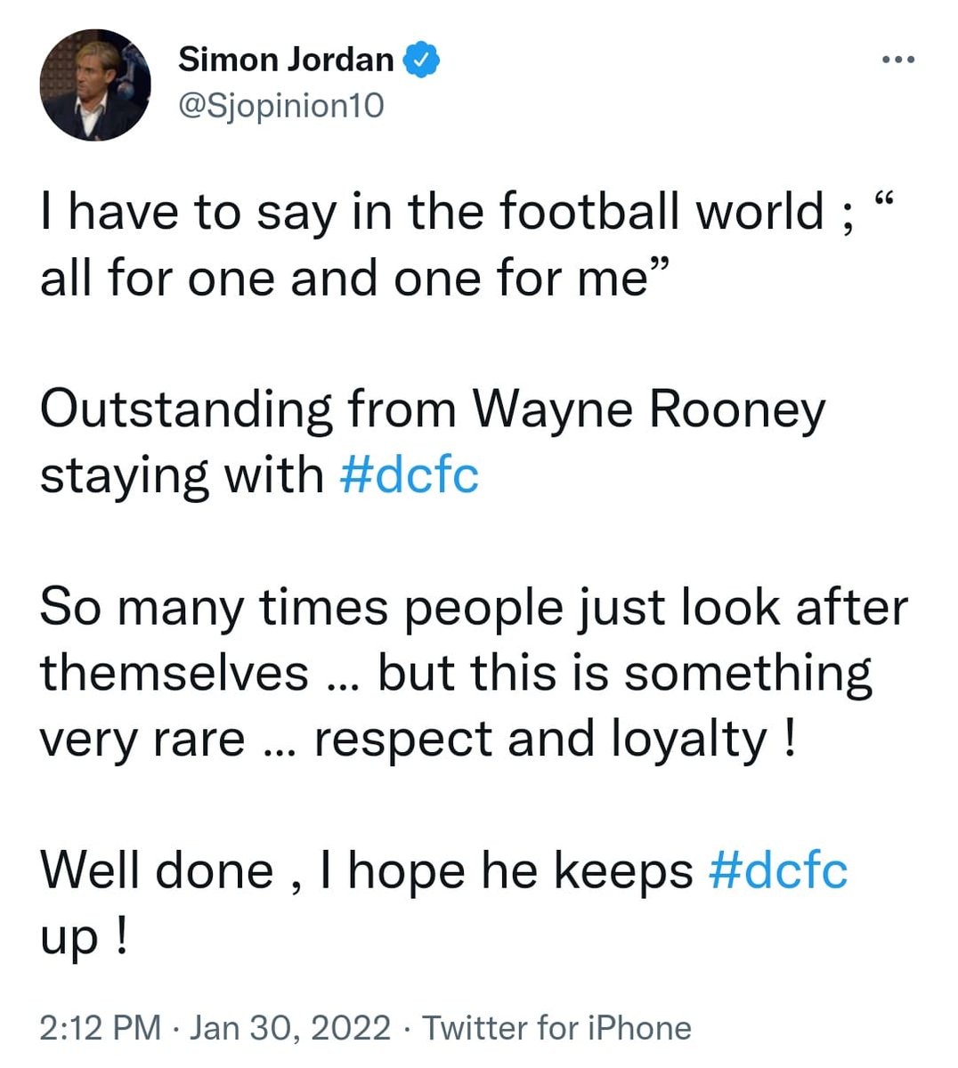 @Sjopinion10 (Former chairman of @CPFC), a big critic of Wayne Rooney being Derby County's manager, labeled Rooney as "The blind leading the blind" has also changed his opinion.