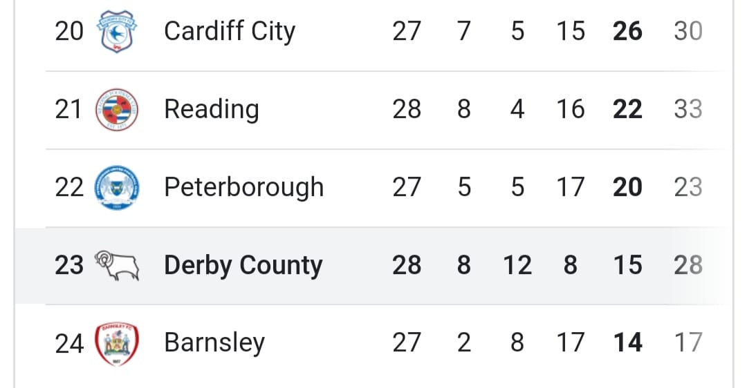 With Derby County currently sitting in 23rd place with 15 points, they are 7 points off from safety with 18 games still to go. A result beyond expectations from Wayne Rooney and his players.