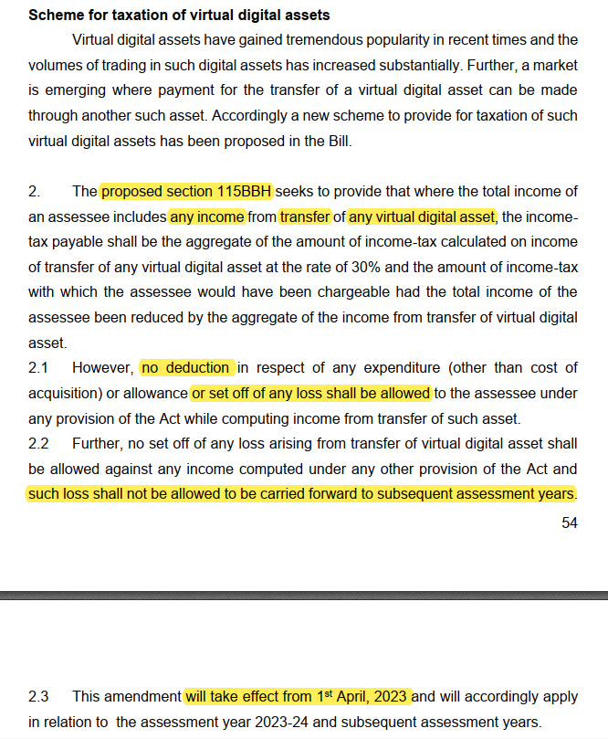 ..forward proposals for the taxation of crypto assets, which was long awaited by the Indian crypto ecosystem, as well as a basic framework for the introduction of India’s version of the CBDC.