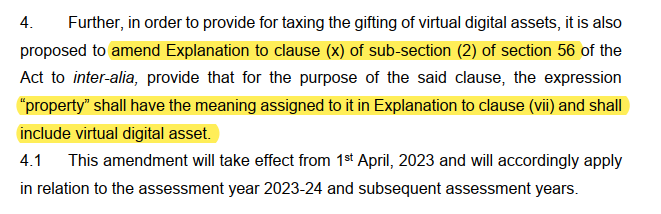 In the proposed budget the gifting of Virtual Digital Assets is proposed to be taxed as property. Thus, the liability falls on the recipient to pay such a tax. This will come into effect from 1st of April 2023.