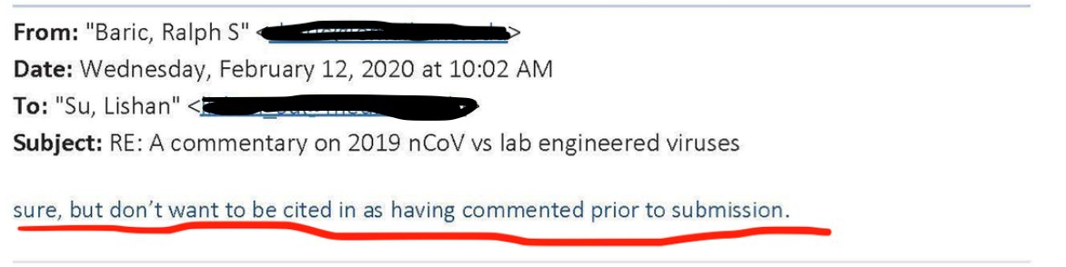 The article “No credible evidence supporting claims of the laboratory engineering of SARS-CoV-2" was secretly edited by Ralph Baric of UNC & Shi Zhengli of Wuhan.