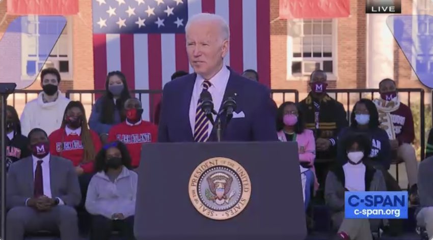 Joe Biden says it: If the voting rights bills are denied a vote, “we have no option but to change the senate rules, including getting rid of the filibuster, for this.”