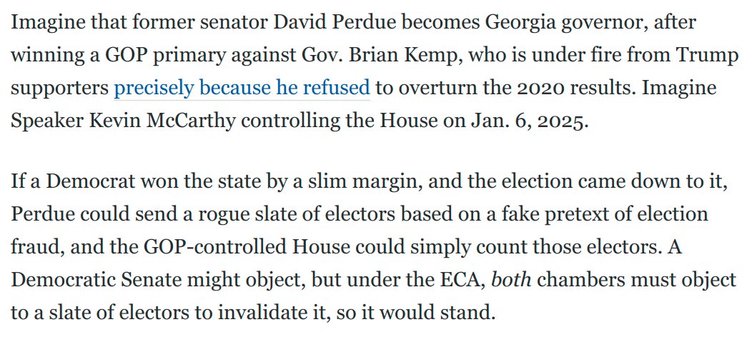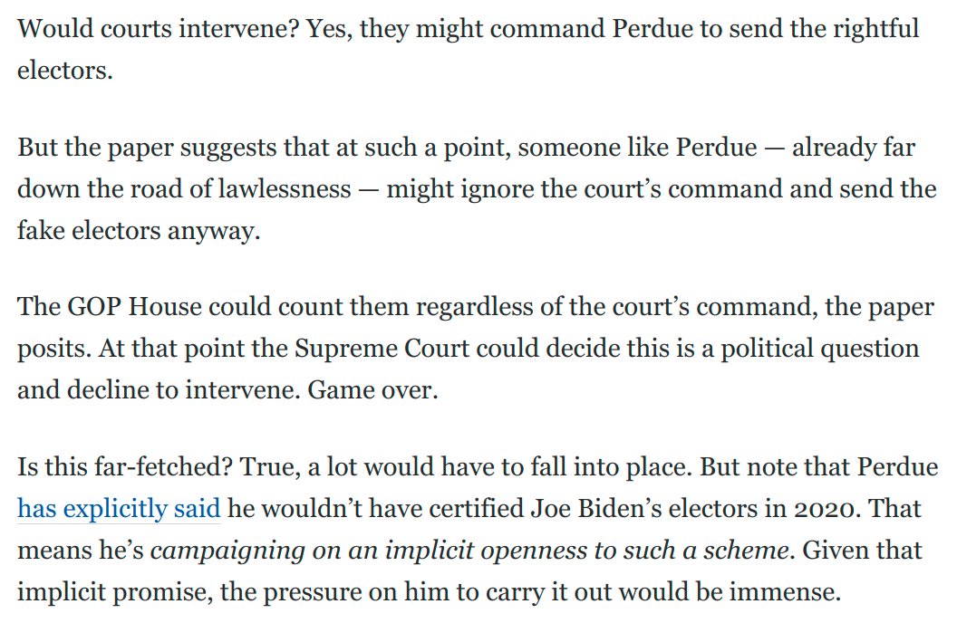 @SenAngusKing@Matt_Seligman Trump's candidate for governor in Georgia, David Perdue, is running on an implicit willingness to appoint fake electors if necessary.