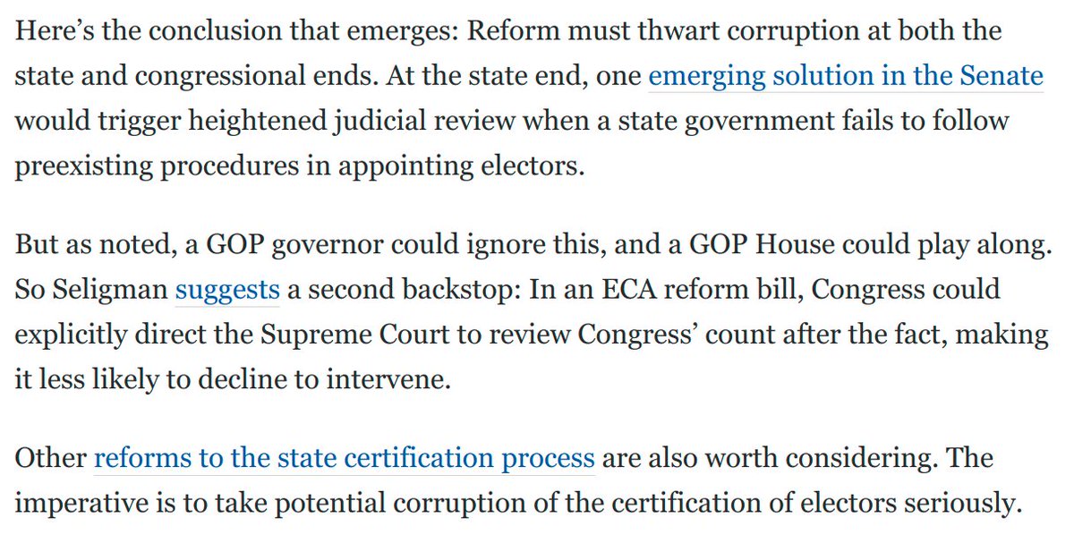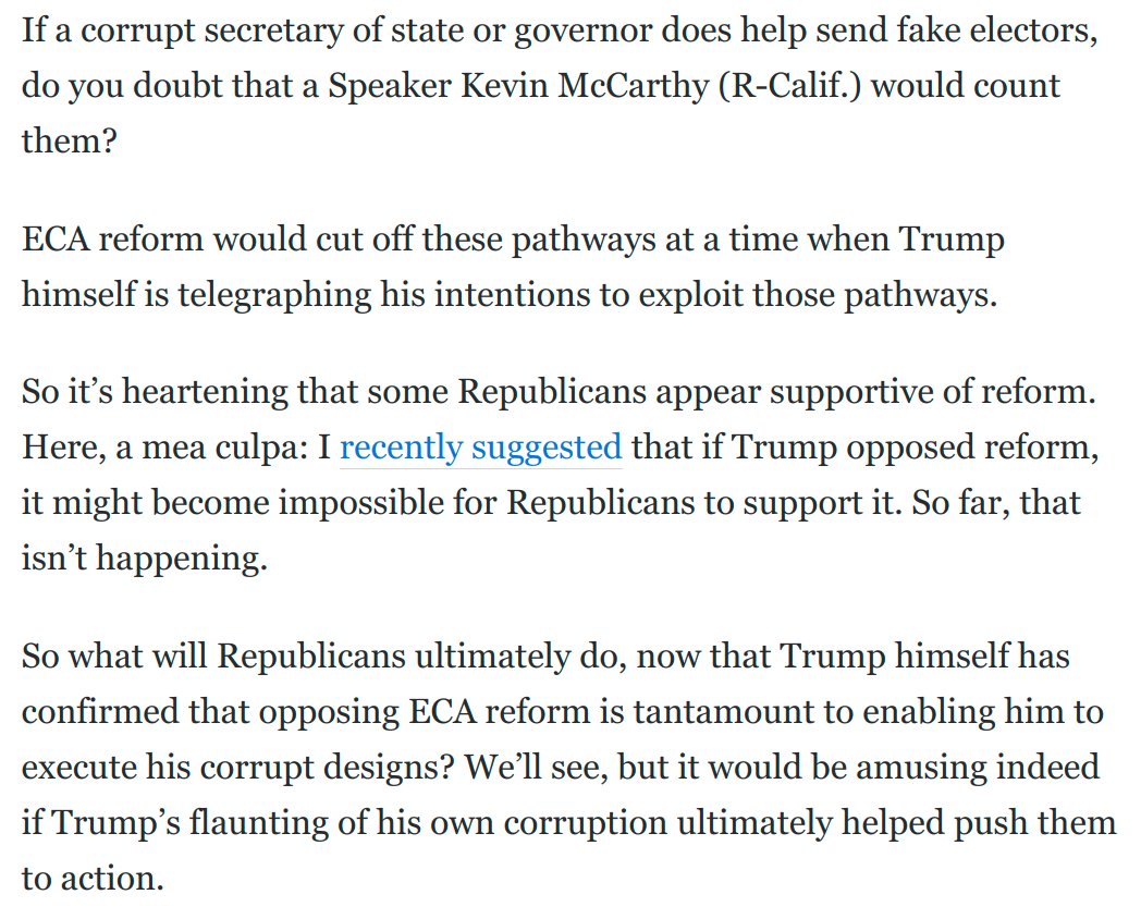 Trump's ugly admissions of guilt over 1/6 are clarifying. Because he's flaunting his corrupt designs, opposing reform of the Electoral Count Act is now firmly aligned with making a 2024 coup easier.