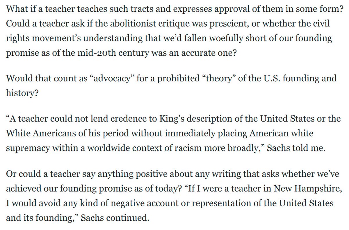 Under the New Hampshire bill, it would be reasonable for teachers to think they must tread carefully when saying positive things about certain abolitionist or civil rights tracts: