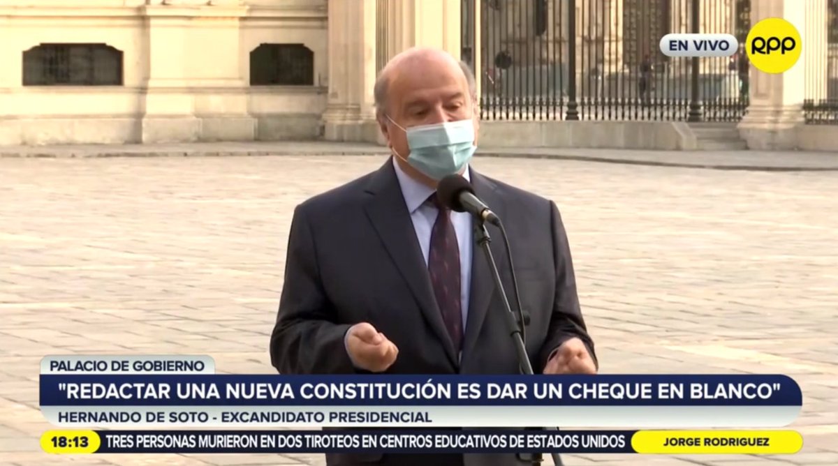 🔴 #EnVivo: Hernando de Soto: "Las preocupaciones de muchos en el Perú se van a resolver si hay un compromiso de que no se impondrá una nueva Constitución. Las metas del presidente pueden ser logradas con la Constitución de 1993"