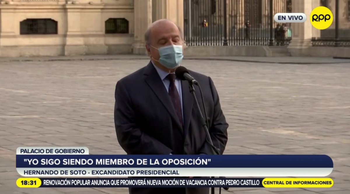 🔴 #EnVivo: Hernando de Soto: "Aparte de eso fue una conversación muy grata. A pesar de estar en la oposición, la prioridad para mí es el país, y para él también"