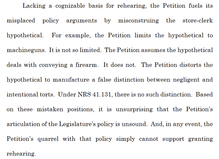 "Instead of attempting to demonstrate a flaw in this Court’s analysis, the Petition instead focuses on arguing why the holding is purportedly poor public policy." caseinfo.nvsupremecourt.us/public/caseVie…