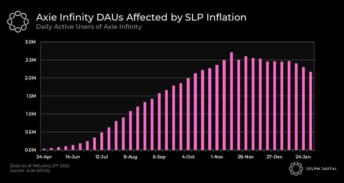 3/ Axie Infinity DAUs grew from 38k in April 21 to 2.7M in November 21.