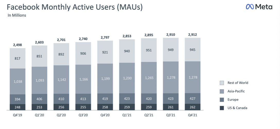 La empresa cayó after hours un -22%, algo que parece excesivo para la plataforma líder en RRSS, con aumento de sus ARPU y MAUs YoY.