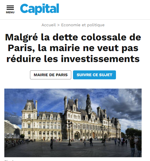 2- Oui la Ville de Paris a beaucoup de dette mais c’est pour la bonne cause : la qualité de vie des Parisiens. Quand on voit l'état des rues, des espaces verts, du patrimoine, de Paris en général, on est en droit de douter.