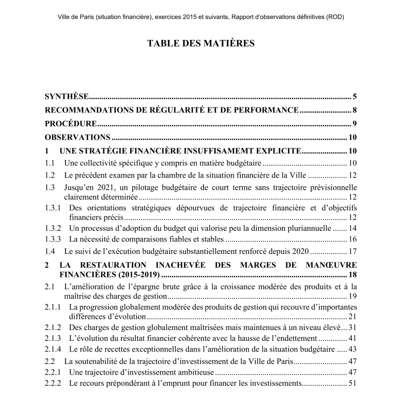 👉Tout au long des 98 pages, les magistrats expriment de très vives inquiétudes sur la gestion des comptes de la Ville de Paris.