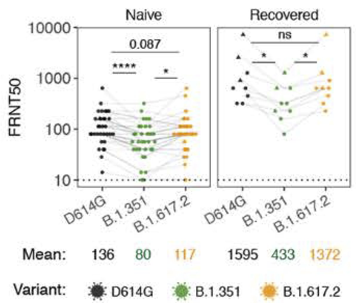 1st paper (medrxiv.org/content/10.110…) shows: if you get vaccinated w/ mRNA vaccine & have a breakthrough Delta infection your subsequent antibodies are almost equally reactive in neutralizing Delta, Beta, Alpha, WT.