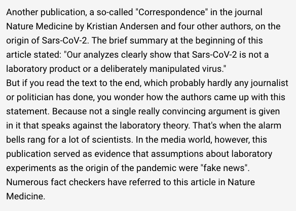 Drosten, who founded the Gain of Function advocacy group "Scientists for Science" in 2014 has had the entire German media to himself. Finally his lies are being called out. archive.fo/KzjNw