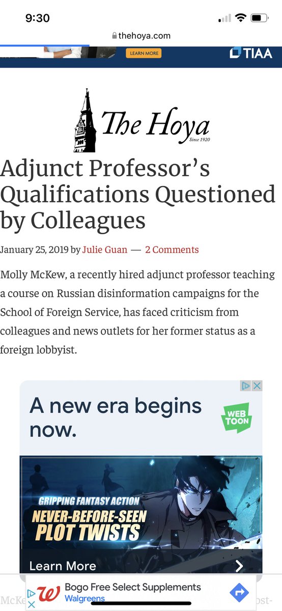 there is another problem, McKew has never held a clearance, meaning she’s never had access or worked on classified info - making her claim of exp w Russian disinfo dubious. Another red flag is her lack of academic experience in the discipline - even as she continue to teach.