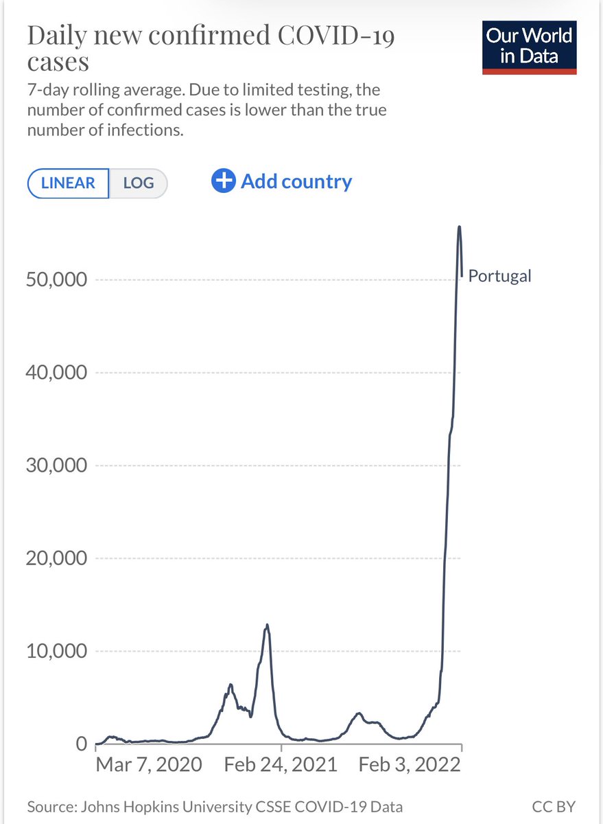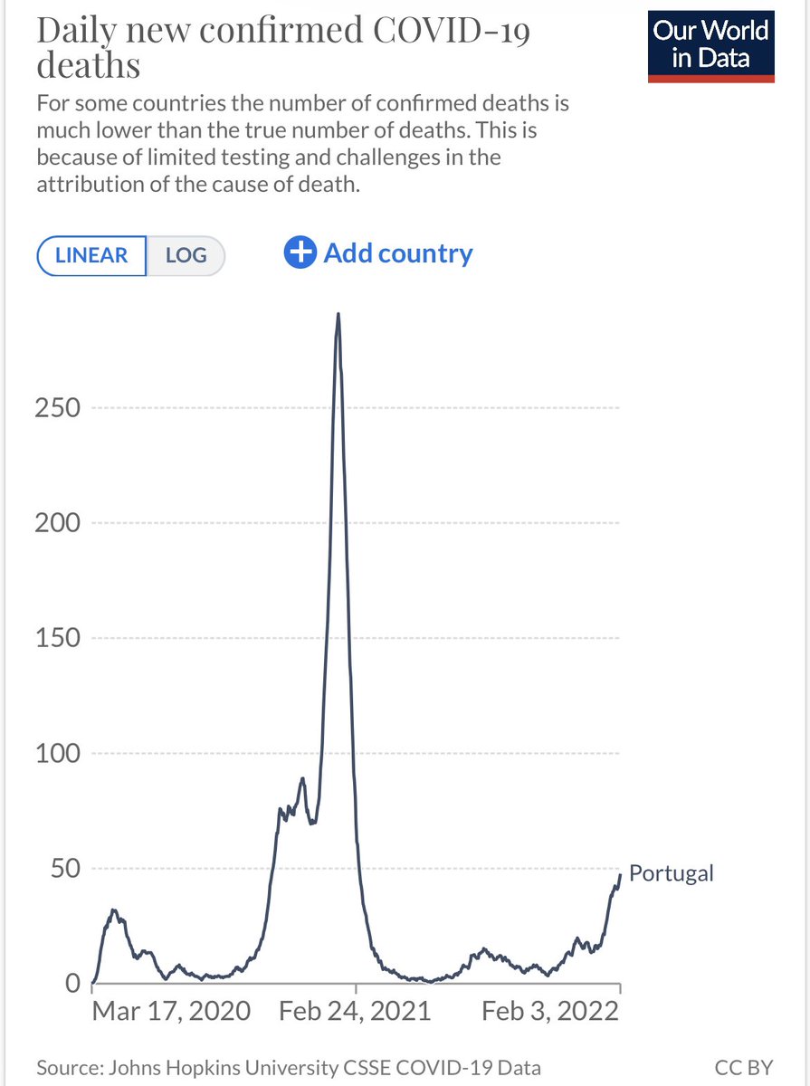 Atualmente em Portugal 🇵🇹 90% dos casos são Omicron, isso acontece desde o início do Ano e ajuda a explicar um número de casos recente que é 4x o Max histórico anterior mas um hospitalizações e mortes mt inferiores.