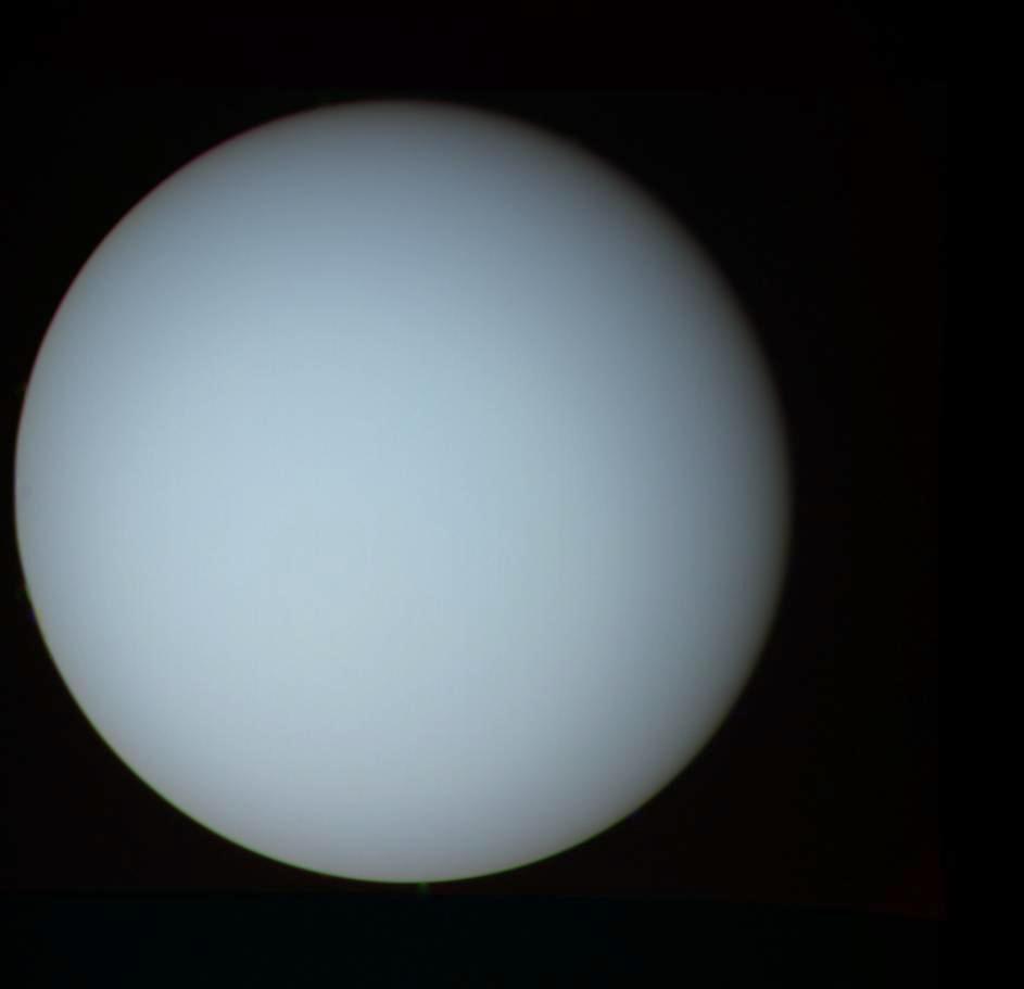 Uranus gets unfairly maligned, and not just because of the name. When the Voyager probe took this true-color image, the planet was quiet and featureless. It now has a huge white storm streaked across its pole. nasa.gov/mission_pages/…