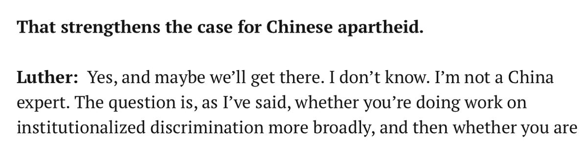 @philipluther resents being asked about China because he’s “not a China expert.”