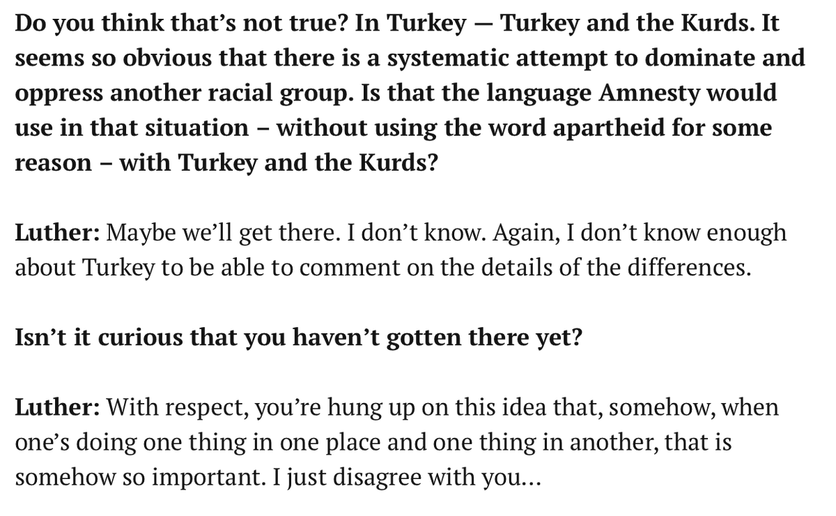 Repeatedly @Lazar_Berman tries to understand if Amnesty will apply this framework in its investigation of other countries and never gets a straight answer.