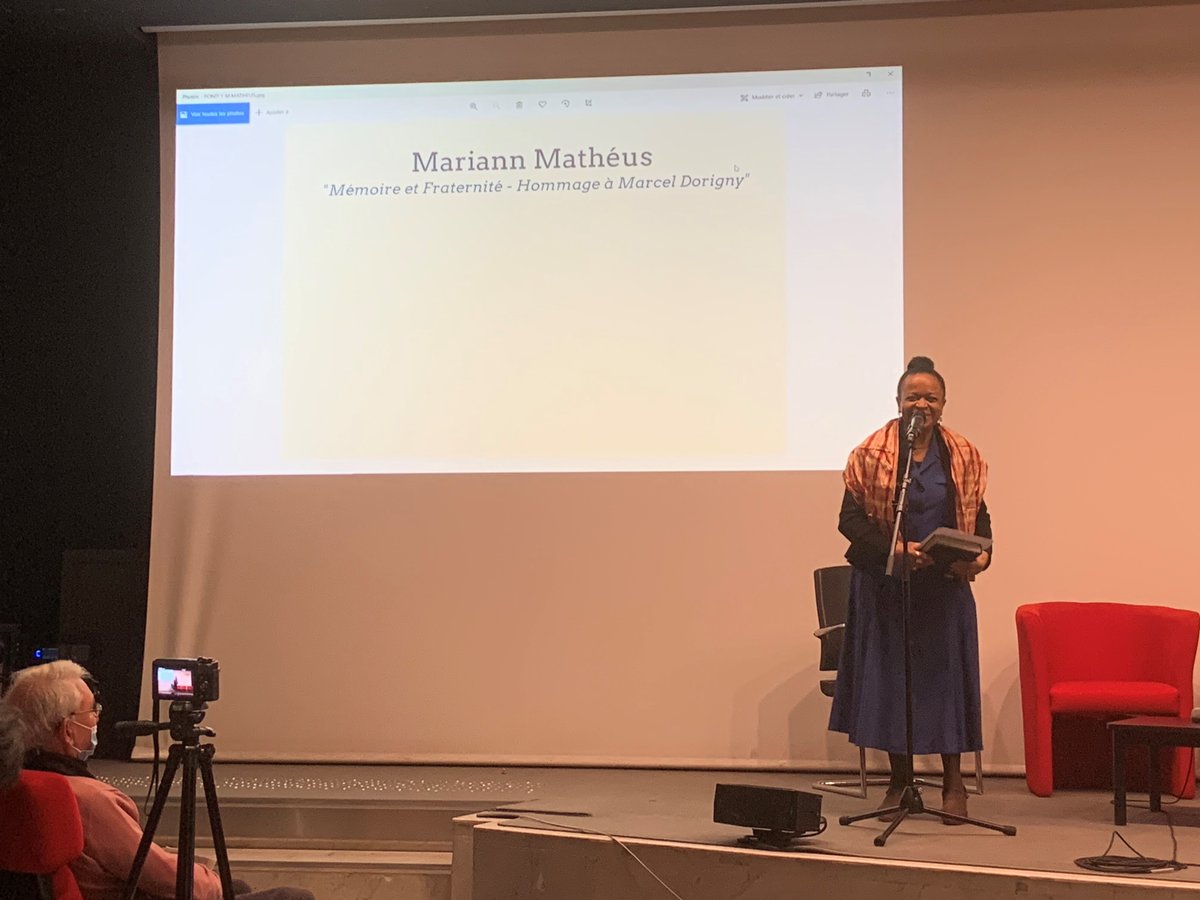 10/ Grâce à Mariann Mathéus, les mots puissants d'Edouard Glissant et de "La tragédie du roi Christophe" d'Aimé Césaire résonnent dans l'auditorium de la ville de @Paris, en mémoire et en fraternité avec Marcel Dorigny.