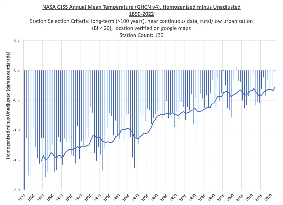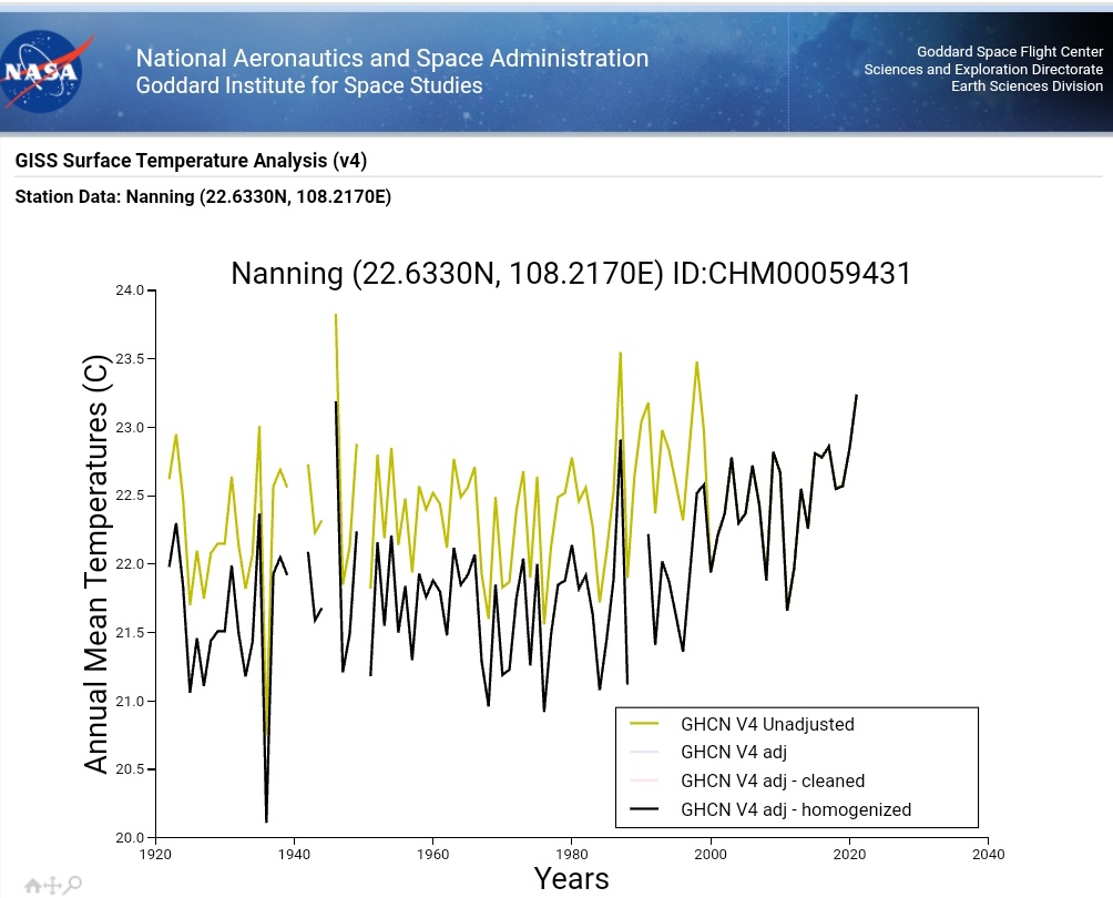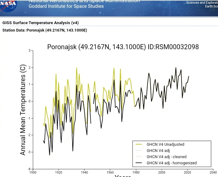 It's strange that it's very hard to find a Russian station in this dataset that shows unadjusted temperature, only 'final' homogenised data. Why is the raw unadjusted data largely unavailable for Russia? And who has done the homogenisation, if not NASA?