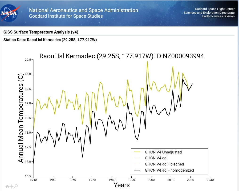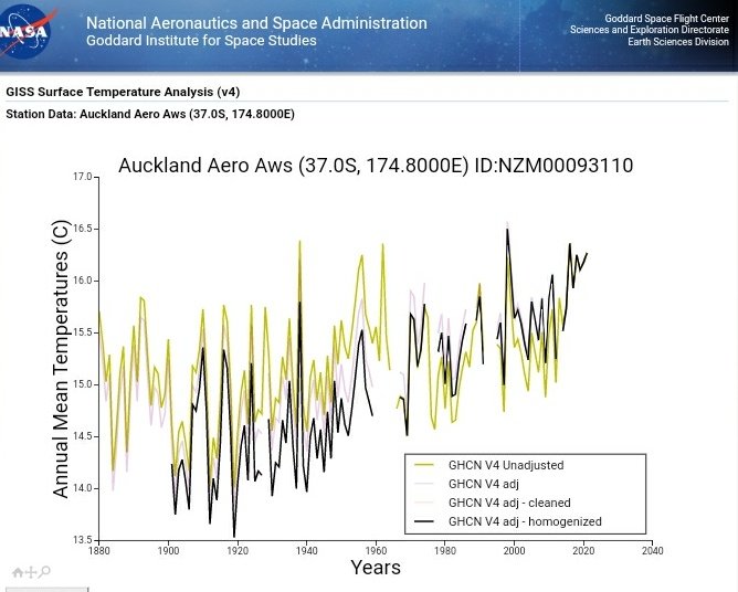 Cooling the past, warming the present in Aukland, New Zealand. This one has a BI of 30, so effected by urbanisation, yet late 20thC temps are adjusted upwards, not down as they should be.
