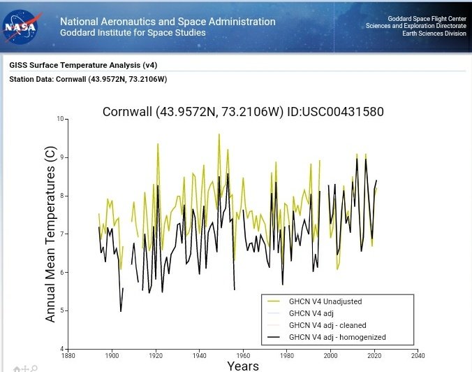 Cooling the past to manufacture warming in Cornwall, Vermont, US:
