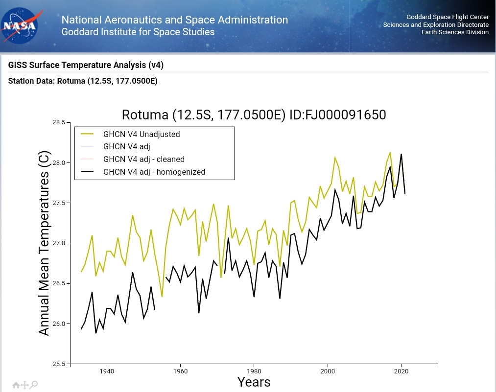 Manufacturing a steeper warming trend by cooling the past in Rotuma, Fiji:
