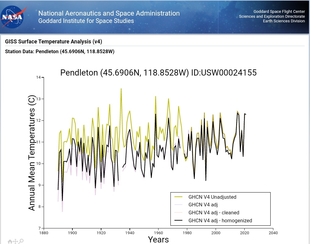 No warming in Pendleton, Oregon, United States, before adjustments: