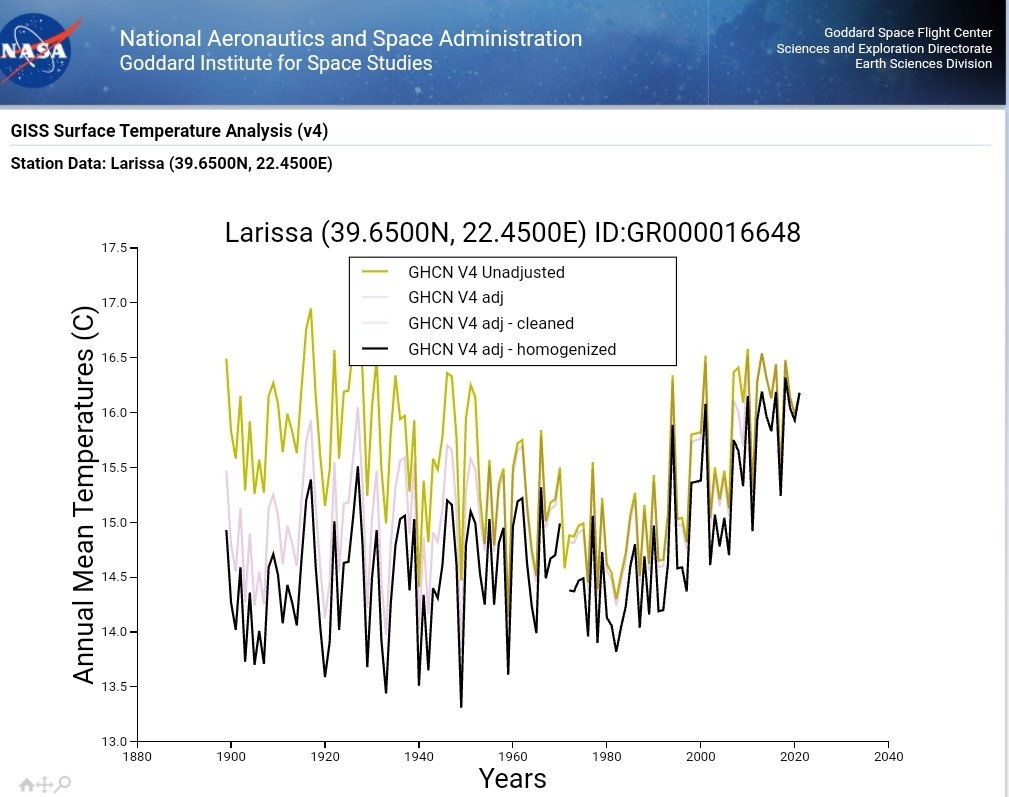 Cooling the past and removing natural variability to create a warming trend in Larissa, Greece (BI 25 = some recent UHI effect).