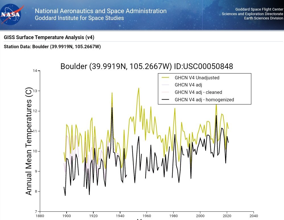 Boulder, Colorado, US: cooling the past and removing the mid-20thC warm period. Recent warming is UHI effect (BI 37).