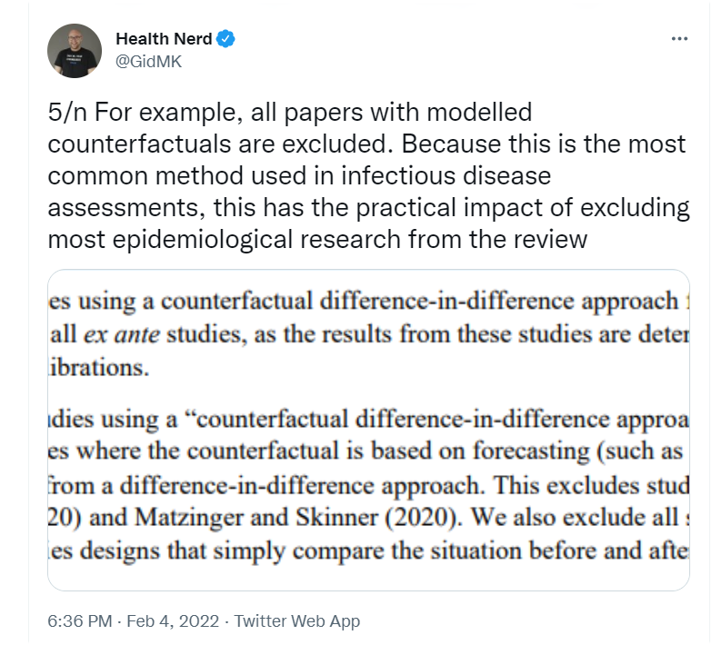 They are not true "counterfactual" studies because the claimed counterfactual is usually just the projection of their own simulation model in the absence of lockdowns. IOW, they use their own model to "prove" itself.