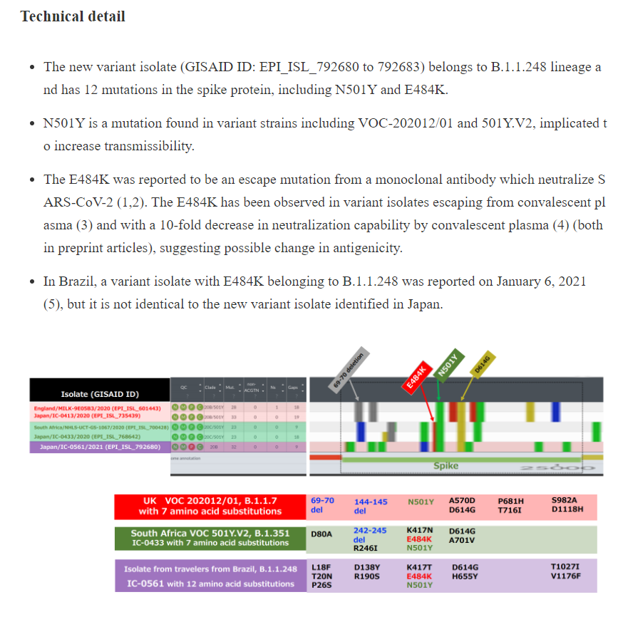 Based on the arrival description on #Japan government site, every passenger arriving at the airport is tested, which is likely key to understanding what variants are imported by the travelers. This has help identify P.1/#Gamma & also #Delta AY.1. 4/n niid.go.jp/niid/en/2019-n…