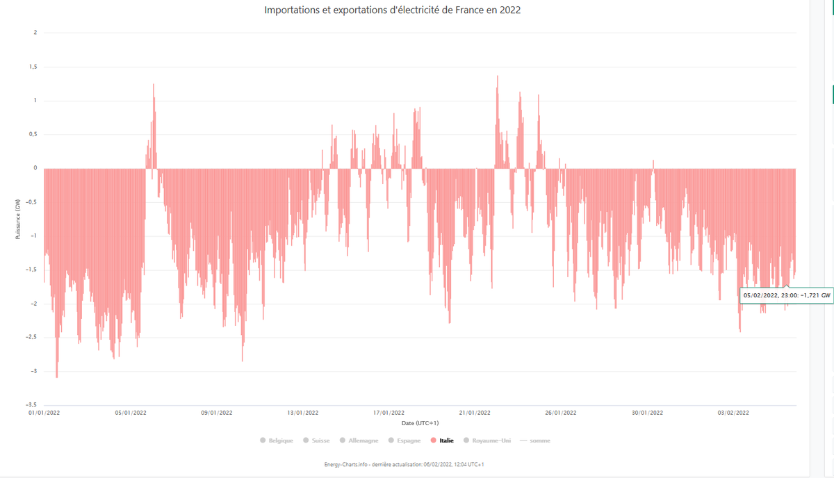 Entre🇫🇷🇮🇹: 1.7GW allaient vers🇮🇹alors qu'on peut y faire passer plus de 3.5GW comme en octobre 2021