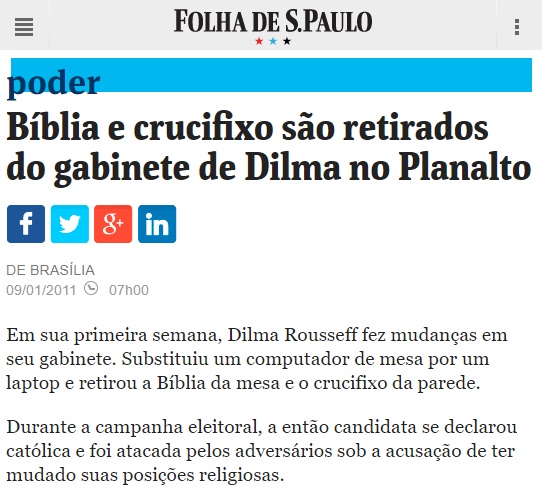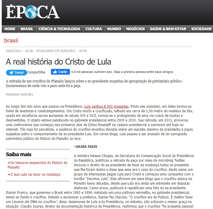 Elevando o conceito de "cara de pau" a um novo patamar, a revista Época — a mesma que havia desmentido os boatos sobre o roubo do crucifixo em 2011 — publicou uma reportagem sensacionalista afirmando que o crucifixo havia "desaparecido de uma hora para outra" do gabinete.